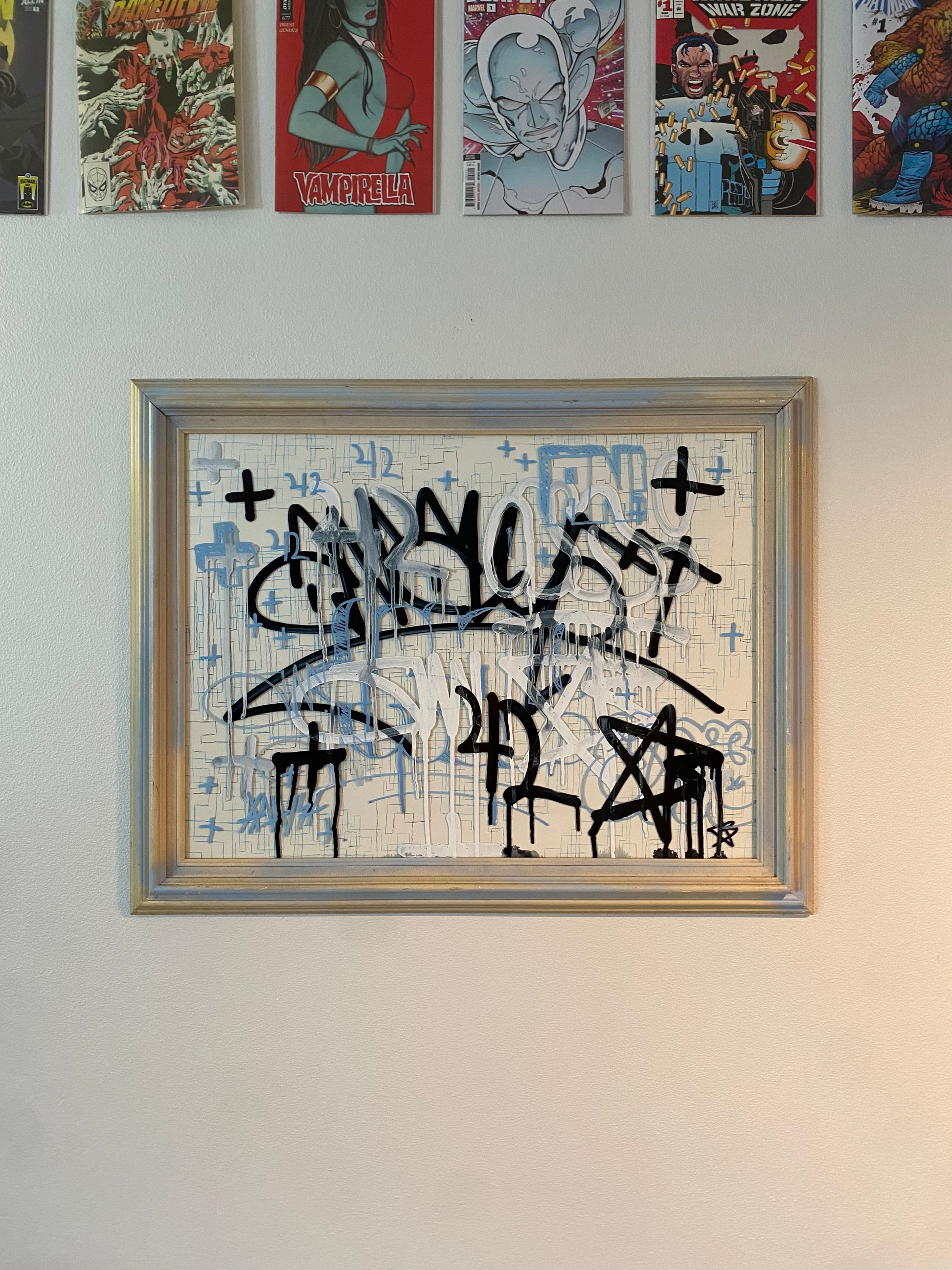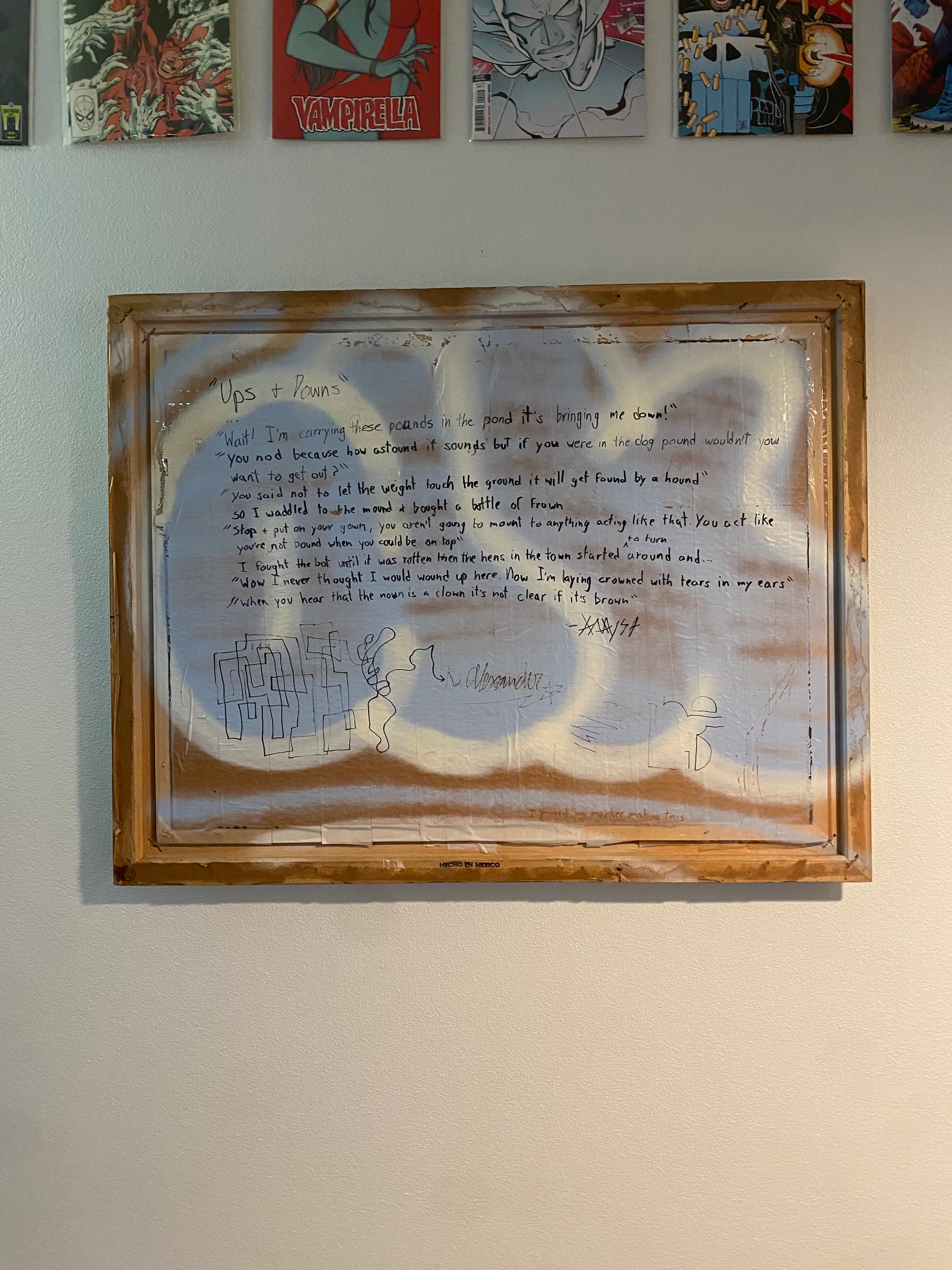 + painted by hand using spray paint and markers